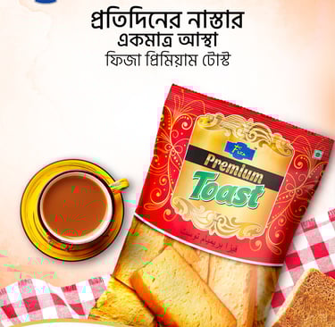 সুস্বাদু, স্বাস্থ্যকর ও নির্ভরযোগ্য একটি টোস্ট ব্র্যান্ড খুঁজছেন? তাহলে ফিজা প্রিমিয়াম টোস্ট হতে পারে আপনার প্রথম পছন্দ। প্রতিদিনের নাস্তায় আনুন স্বাদের নতুন ছোঁয়া।