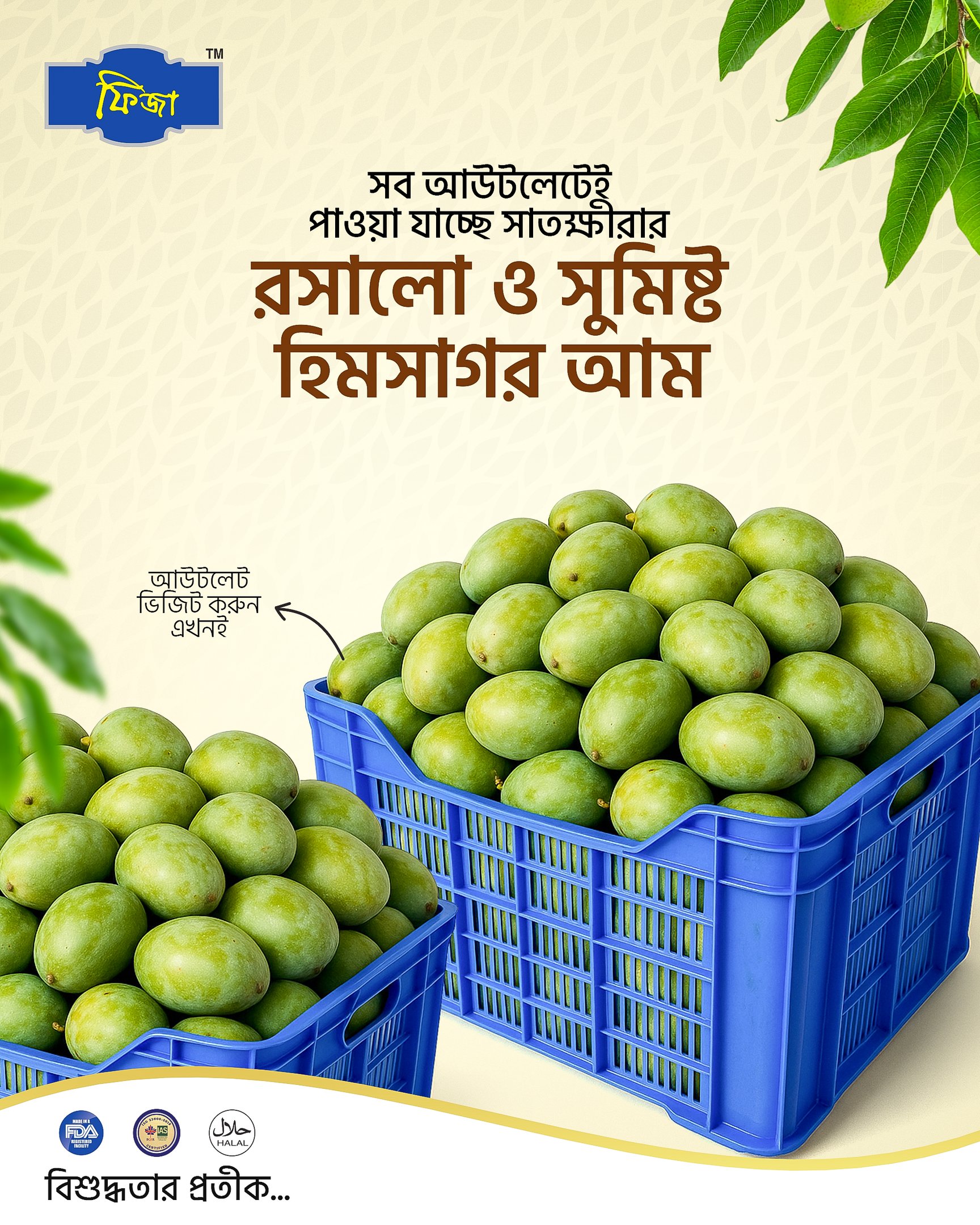 এই গ্রীষ্মে মিস করবেন না সত্যিকারের স্বাদ! আজই অর্ডার করুন Fiza.com.bd থেকে সতেজ, রসালো ও সুমিষ্ট সাতক্ষীরার হিমসাগর আম এবং বাংলাদেশি আমের আসল স্বাদ উপভোগ করুন।